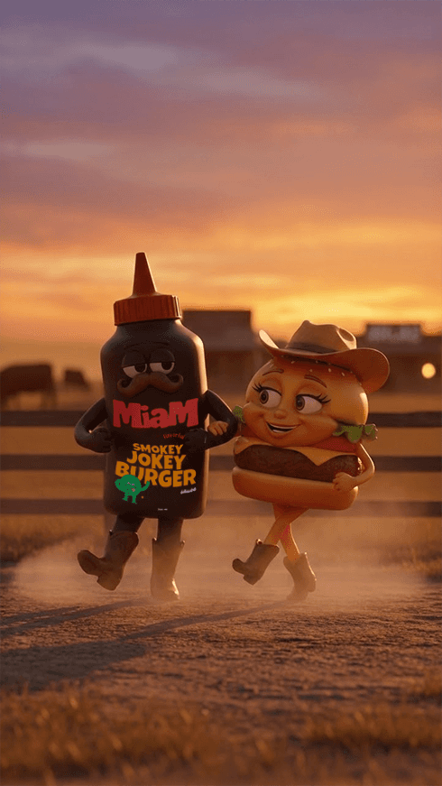 MIAM is a series of nine 25-second concept commercials exploring the relationship between food and flavor through character-driven storytelling. Each film pairs a 3D-animated MIAM sauce flavor with a food it complements, placing them into real-world live-action settings as short, playful love stories. The project blends animation, visual effects, and cinematic direction to test how stylized characters can exist naturally within realistic environments. MIAM served as a proof of concept for scalable, character-led advertising built through an AI-accelerated production pipeline.